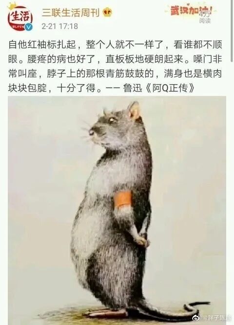 当无数基层干部和志愿者,废寝忘食奋战在抗疫第一线的时候,《三联生活周刊》造谣鲁迅说:自从红袖标扎起,整个人就不一样了,看谁都不顺眼。腰疼的病也好了,直板板地硬朗起来。嗓门非常叫座,脖子上的那根青筋鼓鼓的,满身也是横肉块块包腚,十分了得。