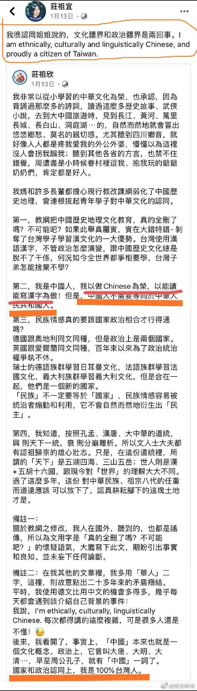 哦,给庄祖宜洗白的说她妈唱过《我爱你中国》。嗯,是的,是唱过。一首歌管三代?庄祖宜把离开中国比喻成躲避纳粹也是爱国?汪精卫小时候还是革命青年呢,北伐战争初期还是倾向于共产党的国民党左派呢。大鹰还是……又如何?”