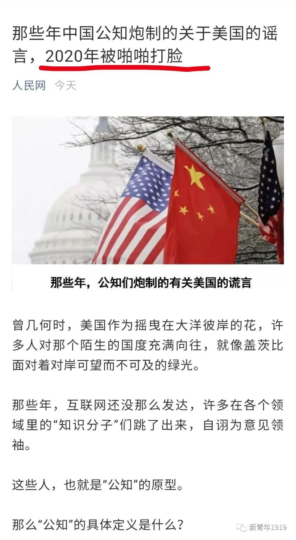 几分钟前,看到人民网发的一篇题为《那些年中国公知炮制的关于美国的谣言,2020年被啪啪打脸》的文章,哇塞,最令人瞠目结舌的一幕出现了: