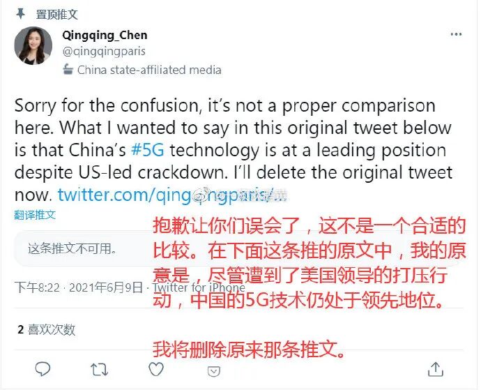 据@一领淡鹅黄 在微博爆料,环球时报记者@陈青青 突然在外网更新了一条莫名其妙的推特——