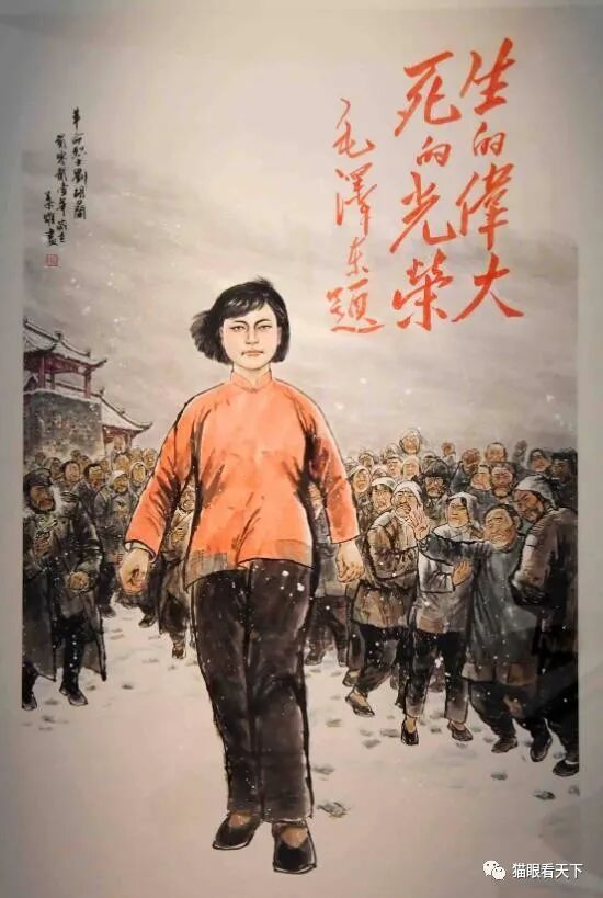 在解放战争时期,刘胡兰为了掩护人民群众,面对敌人的铡刀,毅然赴死,年仅15岁。毛泽东主席亲笔题词,生的伟大,死得光荣,赞扬了她视死如归的牺牲精神。