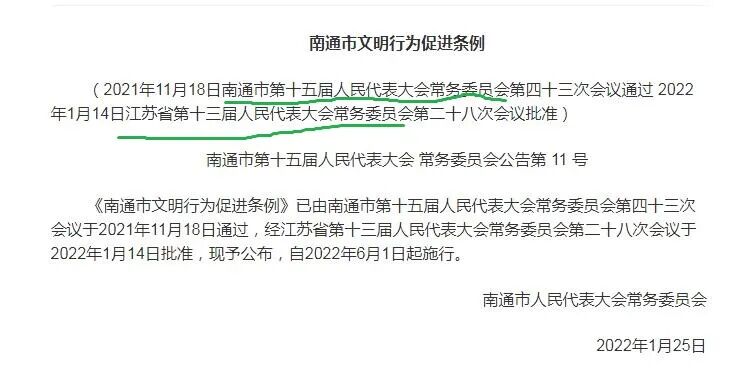 这可是地方人大依据《立法法》规定制定的地方性法规哦,顺便科普下,南通市是具有制定地方性法规的权力的,上个截图给读者看看: