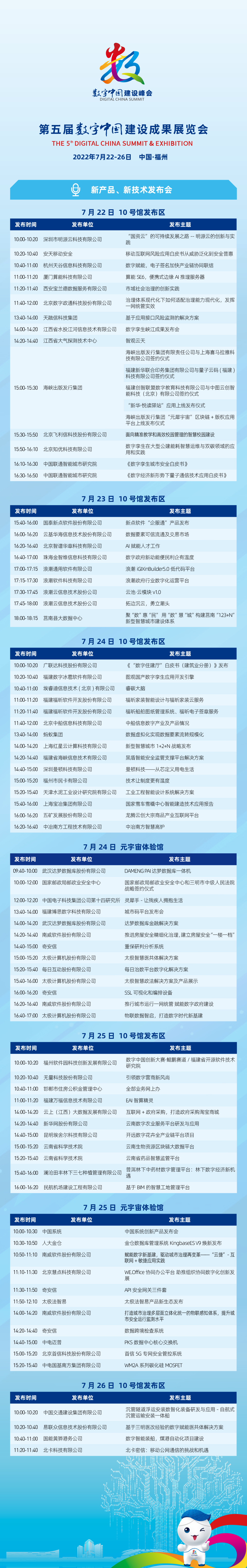 作为数字中国建设峰会的重要组成部分,第五届数字中国建设成果展览会于2022年7月22日至26日在福建省福州市海峡国际会展中心举办。本届展览同期将举办新产品、新技术发布会,本文将带您了解发布会最新日程安排。