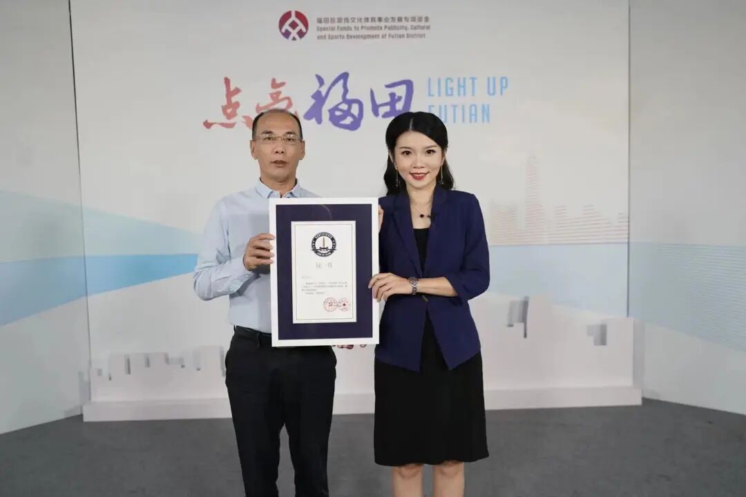 活动最后,韩世国将代表个人“文明微光”的水晶柱放入点亮装置中,象征“文明福田”的一束强光照亮了整个直播画面。与此同时,正在观看直播的市民朋友通过“点亮”小程序,参与线上互动,与韩世国共同汇聚文明之光、点亮福田。值得一提的是,当晚参与“点亮”互动的幸运观众还有机会获得一份“文明福礼”,将文明之光传递到千家万户。