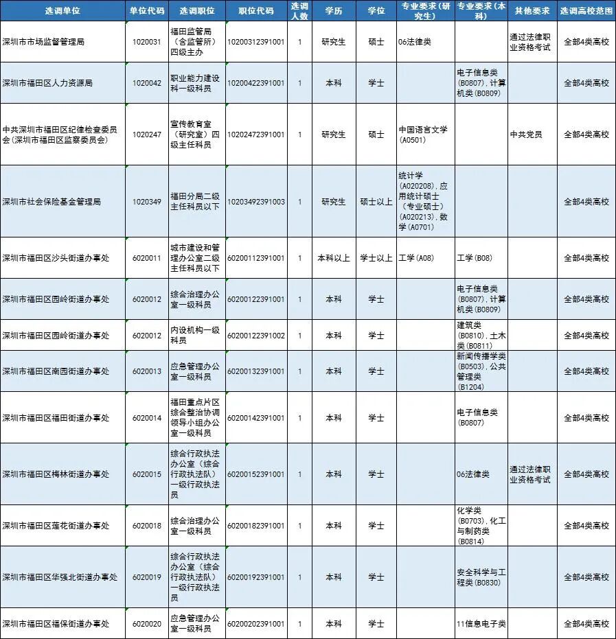 注:相关内容根据《广东省2023年度选调优秀大学毕业生职位表》整理,仅供参考。