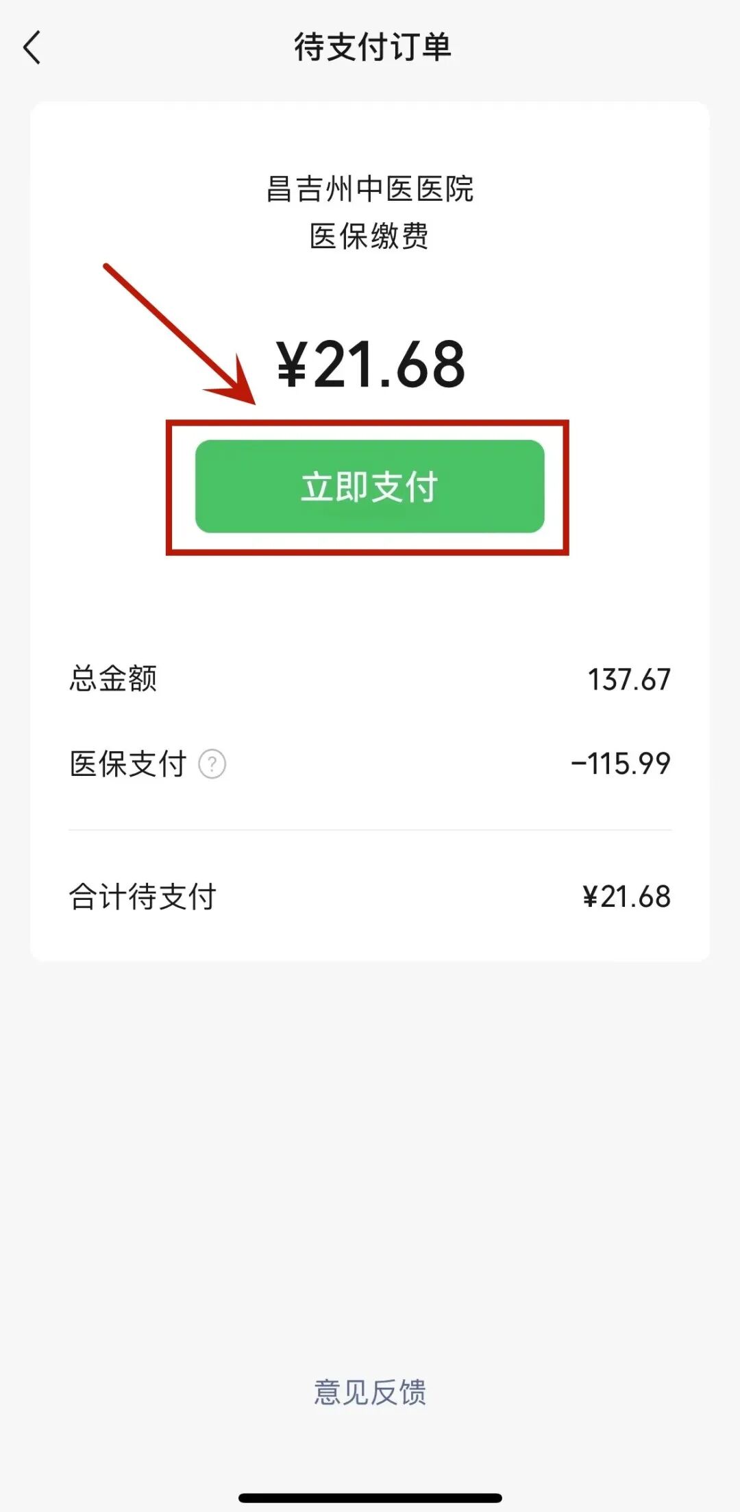 4.完成支付后,我们将完成线上医保门诊缴费。
