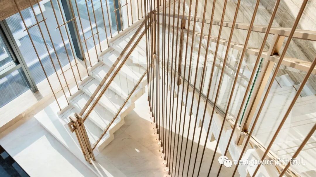 楼梯灵感来自于罗马著名的西班牙广场,因赫本而被赋予无限浪漫的西班牙阶梯,白色大理石阶梯仿佛琴键般,拾阶而上似乎伴随着悦耳的音乐进入个人天地-卧室。