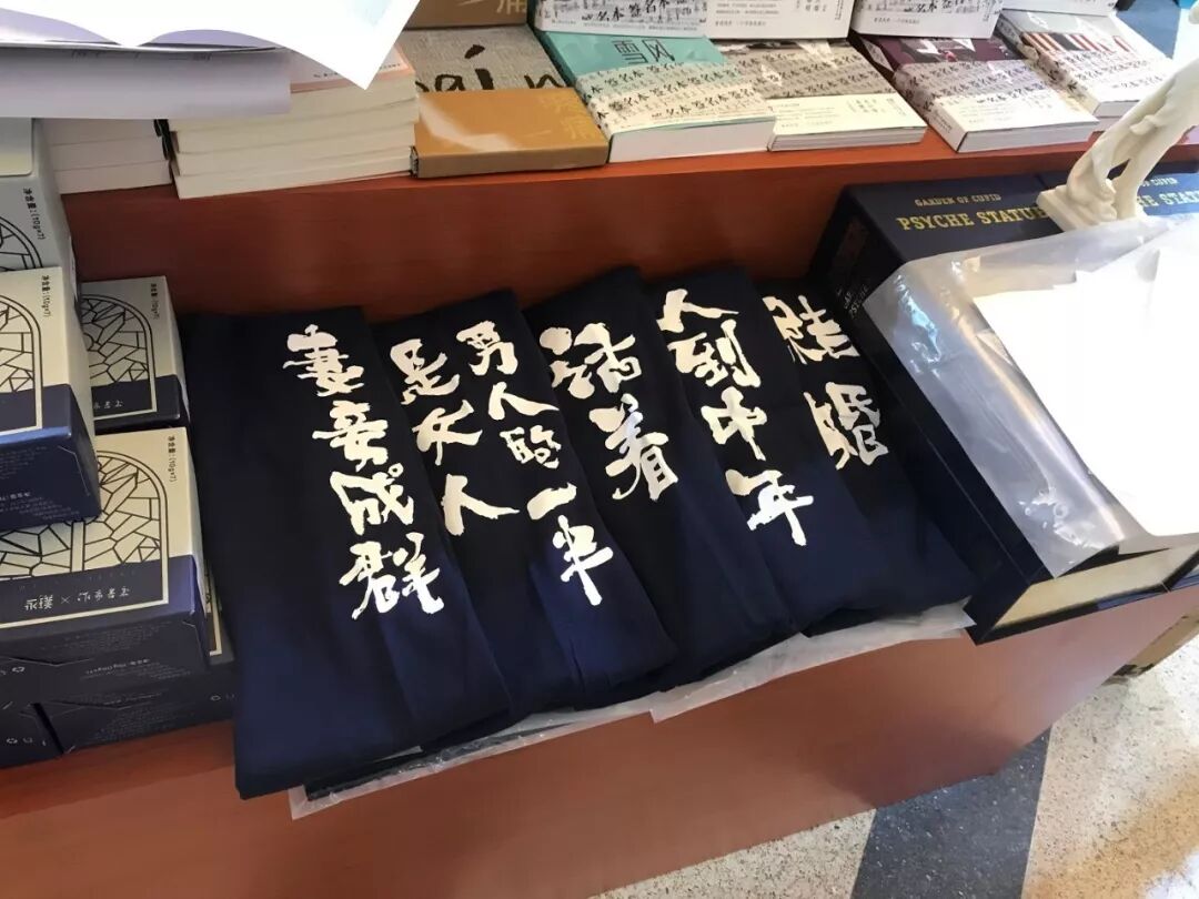 更有多种文创产品:书法家朱敬一题写的曾经刊发于《收获》的小说篇名,构成多种奇妙组合,印制在了T恤/卫衣/马克杯上。