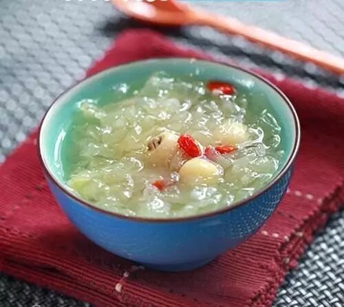 银耳莲子百合糖水 【用料】银耳50克,莲子、百合各25克,枸杞10克,陈皮一小片,冰糖适量。 【做法】 1、银耳用水浸泡约10分钟,洗净; 2、莲子、百合热水浸泡约半小时,洗净; 3、将银耳、莲子、百合、陈皮一起下锅,武火隔水炖约半小时,改小火慢炖3~4小时; 4、加入枸杞,冰糖,10分钟后保温即可。 【功用】滋阴润肺,生津止咳,清心除烦。 【适宜人群】气阴两虚、且阴虚较重,久咳、干咳,咽喉干痒不爽者尤其适宜。脾虚者可加半片生姜一同炖服,减少慢炖的时间,以制凉润之性。 |