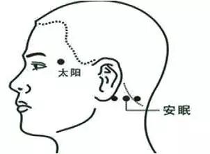 第二步,按揉安眠穴1~2分钟(安眠穴是经外奇穴,位于耳后凹陷处和枕骨下凹陷处的连线中点)。