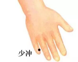 按摩少冲穴的手法:用拇指和食指揉捏另一只手小指两侧,按压时要注意力度稍重,每次按摩五分钟,每日按摩2次。