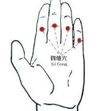 用大拇指指尖掐揉四缝穴,每穴掐揉2~3分钟,长期掐揉,可以治疳积、呃逆、胃脘痛、哮喘、中暑等症状。