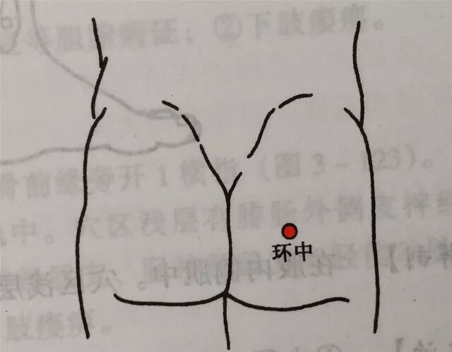 在臀部,环跳与腰俞穴连线的中点。