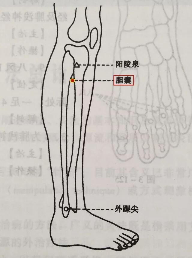 2、治胆石症胆绞痛∶胆囊穴,内庭,公孙,三阴交。