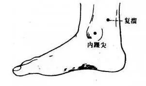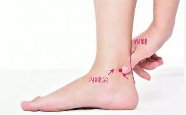 在足内侧面,内踝的凸起处。
