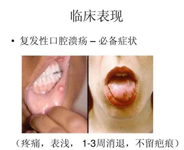单纯的口腔溃疡远远不足以让我们怀疑白塞病。一般来说,当溃疡合并全身症状,比如生殖器溃疡、眼葡萄膜炎,或视网膜血管炎等等时就必须想到白塞病的可能性。