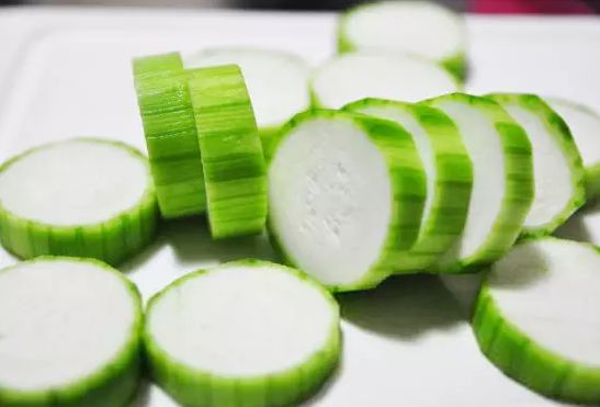 具体制作方法是:将一根丝瓜去皮、切成薄片,土茯苓30克、适量盐放入锅中,煮软后加入5克绿茶,浸泡入味即可。