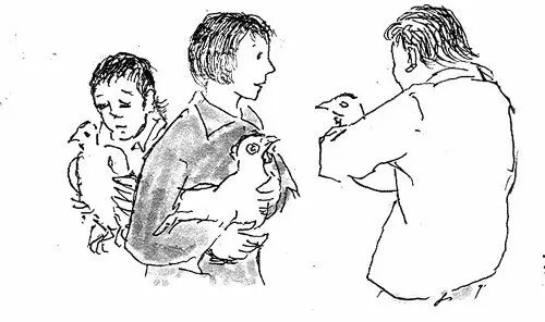 “鸡友”们一个个都在腋下夹着一只大公鸡,交头接耳,攀比公鸡的大小肥瘦,甚至交流起了养鸡心得。