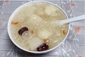 【制法】将白果去壳,银耳泡发(2小时左右)洗净,一同放入砂锅,加水适量,先大火煮沸后再文火熬煮,待银耳、白果烂熟后,加马蹄、冰糖,再煮3分钟即可食用。每日分2次服完,每日1剂,连服5~7日。