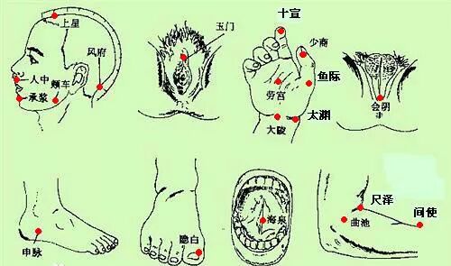 第十针直鼻上入发际一寸名鬼堂,火针七针针三下。