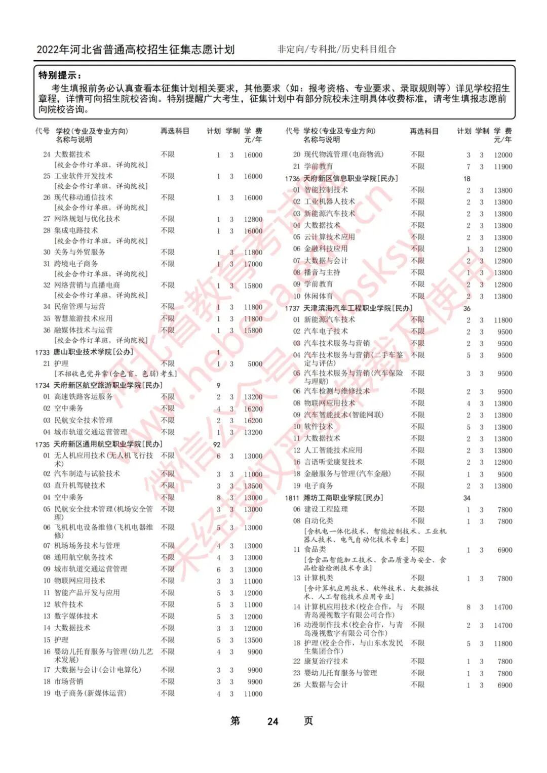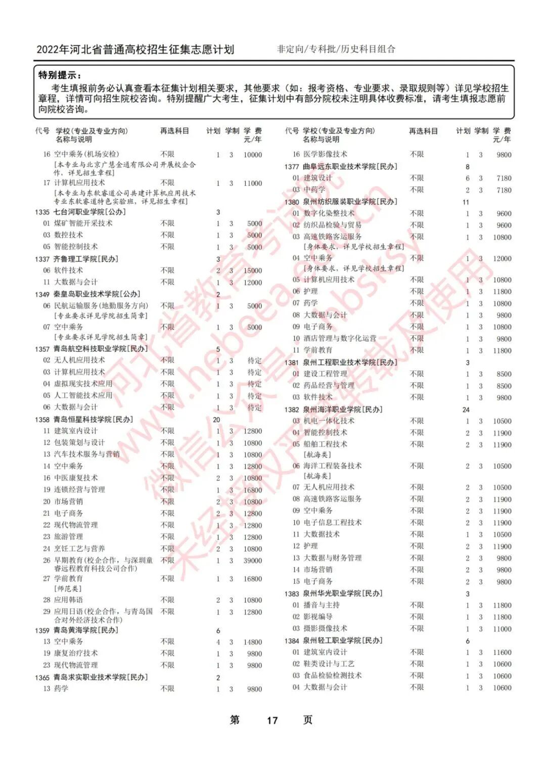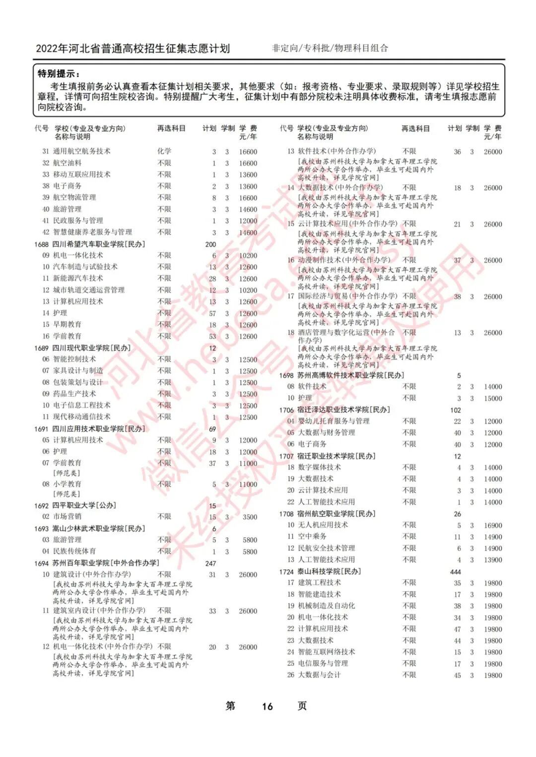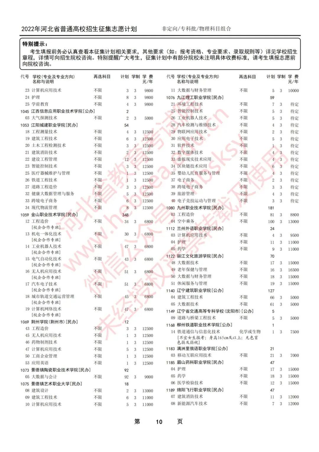 二、本征集计划是专科批集中填报志愿录取结束后院校缺额和新增计划。考生须按照本次征集公布的院校(专业)填报,以免造成无效志愿。专科批第一次征集志愿录取时不降分,仍执行专科批文化控制分数线。院校在录取过程中有可能根据生源情况调整计划,由院校负责解释。