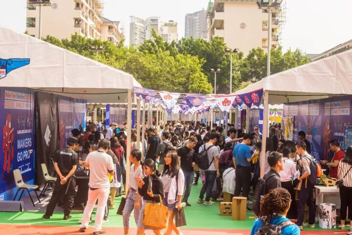 2016:“我的世界,我来造”,国家双创周分会场,第一次完全融入商业中心区举办,经历了历年来最恶劣的天气,从台风到暴晒。这一年,有许多创客创业成功,但似乎失败的更多,对于创业的热潮,大家更趋于理性,有了多面的见解。看回顾