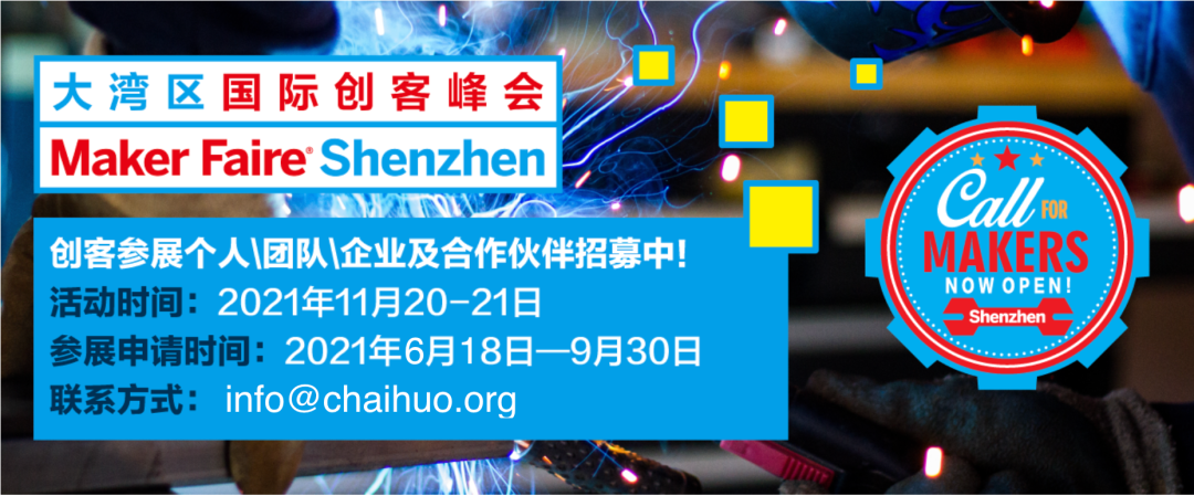 特大消息,大湾区国际创客峰会暨Maker Faire Shenzhen 2021线下展商招募通道现已开启。如果你想在中国最大的创客盛典上展露头脚,结识更多志同道合的创新人才,探讨技术跨界应用的更多可能,扫下方二维码或文末“阅读原文”报名吧~