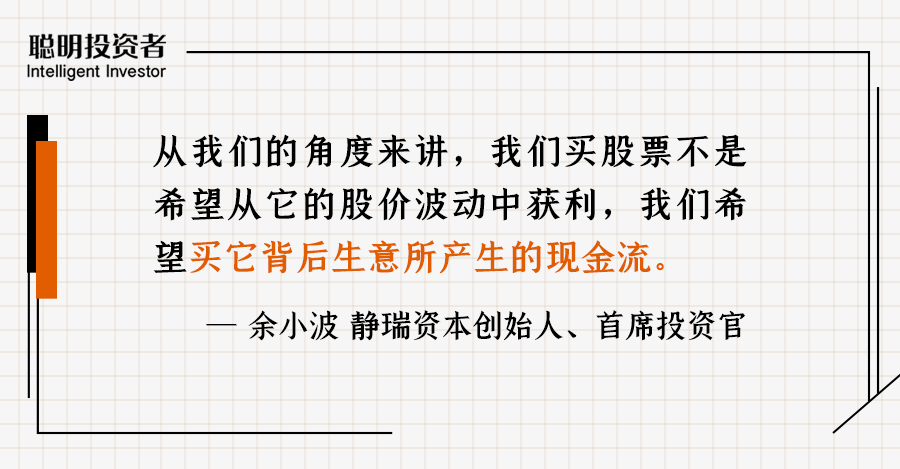 “我们不希望从股价博弈中获利,我们希望买到是生意所产生的现金流。”正如余小波所说,投资应该回归本源,未来的现金流能否持续增加才是投资企业的关键。