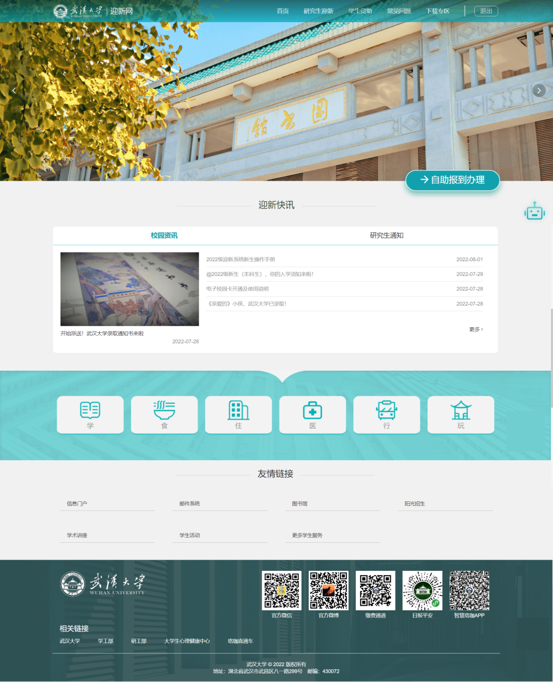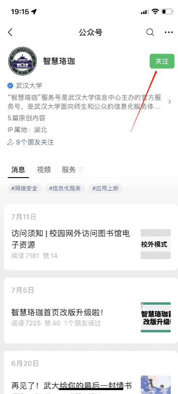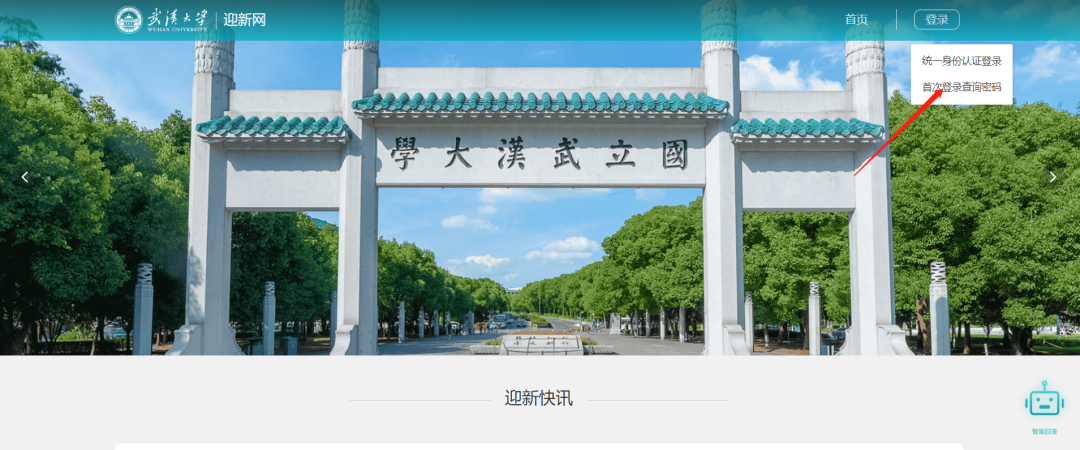 3)公众号:微信搜索“智慧珞珈“公众号或扫码--关注公众号--点击”新生通道“菜单--迎新网。