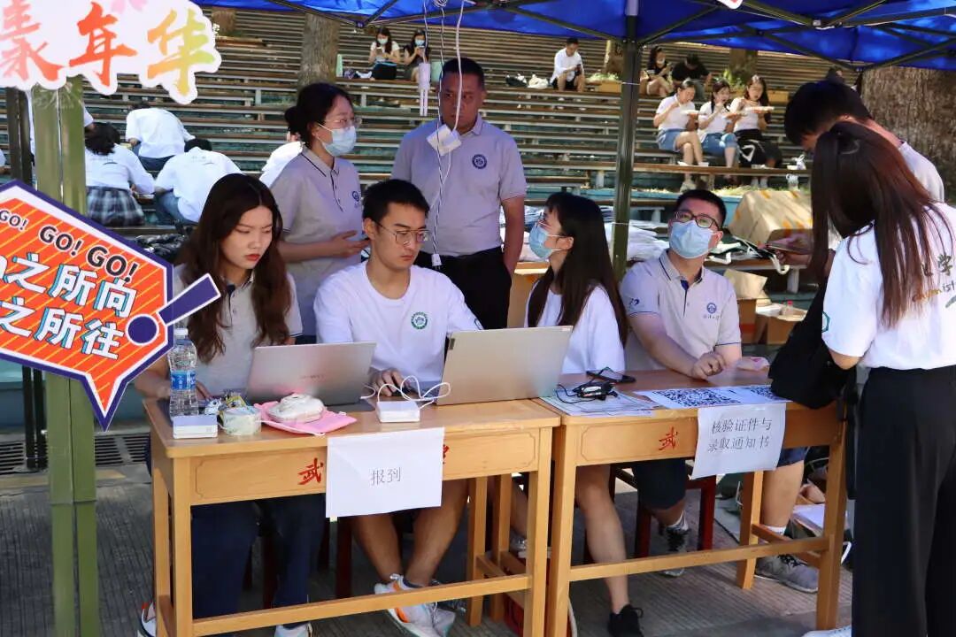 新生们在工作人员地指引下有序查验学历证书、验证身份、核对报到信息、办理报到手续并领取相关物品和资料,顺利完成报到程序。