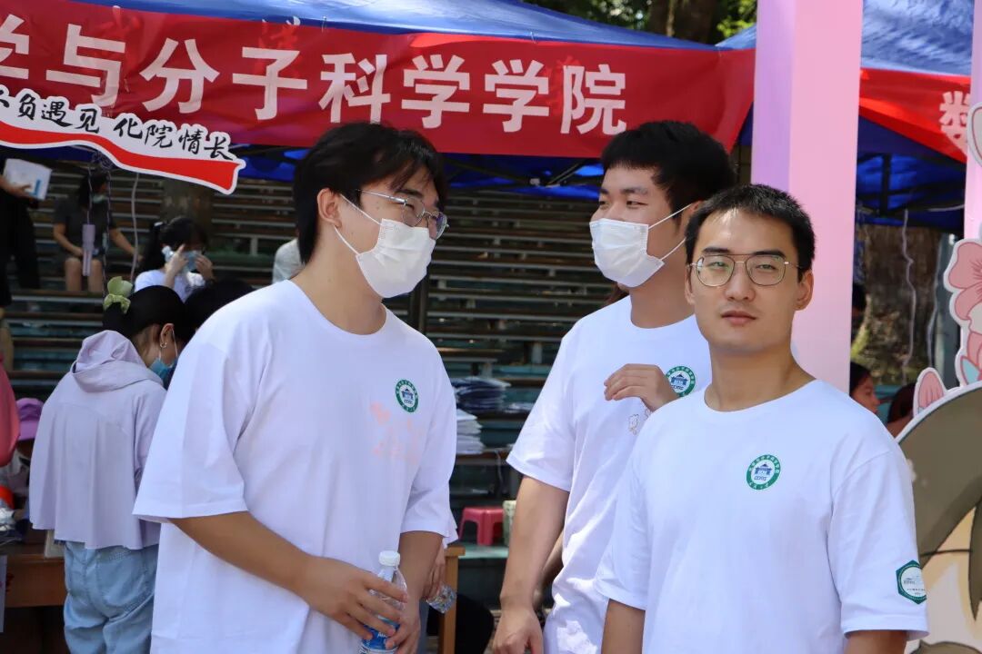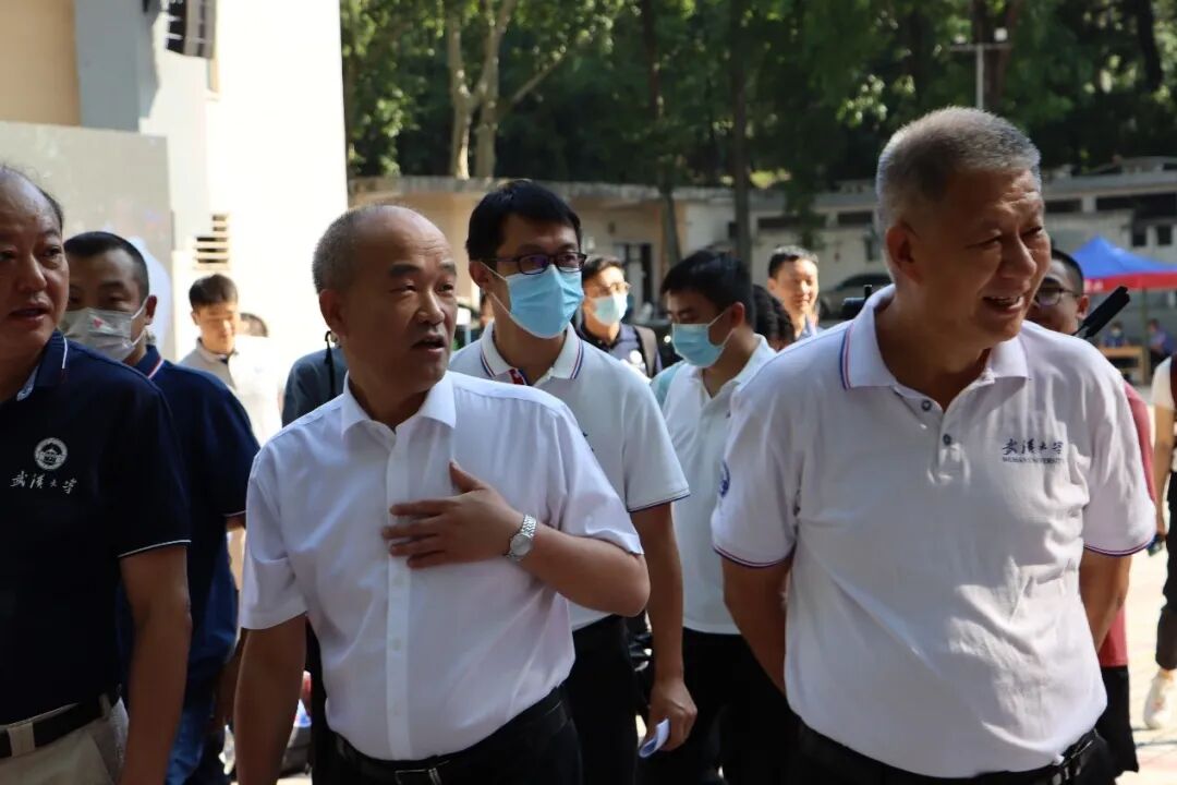 在迎新过程中,武汉大学党委书记韩进、武汉大学校长窦贤康等学校领导一行也来到化院迎新点现场,并在学院党委书记王丽萍、党委副书记王中全等领导的陪同下询问新生报到细节,同时还热情地与新生和工作人员进行合影。