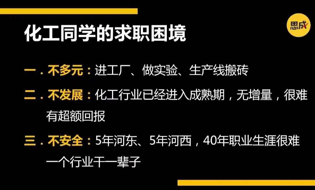 一是在立足化学化工行业的同时,更要面向多元化,全方位的求职市场;要打开求职视野,结合自身优势,利用学校平台,将三者有机结合起来。从而找到一份符合自身期望,发挥自身优势的工作。这就要求我们在平时的学习和科研过程中要培养一门安身立命的技能,在此基础上更要有所侧重地去发展自己的特长;从而将自己打造成一个专业技能过硬,综合素质突出的优秀求职人。