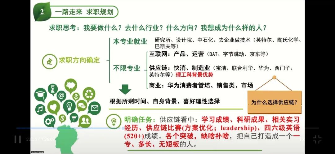 王笑非师姐分享了在华为,宝洁等企业的实习以及求职经历;并根据自身经历向我们分享了在求职过程中求职方向规划,简历投递策略,岗位选择以及实习和科研经历的阐述技巧等。