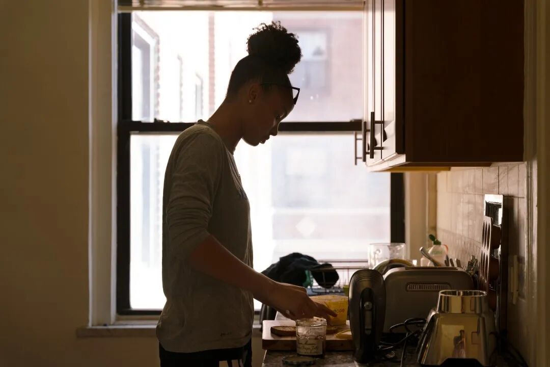 如今因为疫情的原因,Rachel 不能返回昆杜,也不敢走上美国的街道拍照。她上了一门学校的线上摄影课,整个学期专注于一件事情,拍一个主题——“家”。家是人们最熟悉但也最容易忽略的地方,因为太熟悉所以发现不了美的存在。Rachel 用镜头记录下疫情期间,自己一家人如何在家里生活。家有时很杂乱,但在她的相框里呈现出了别样的美感和意义。