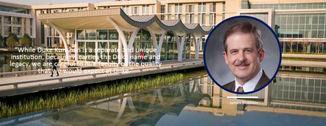 杜克大学副教务长、杜克大学“昆山杜克大学项目办公室”主任詹姆斯·多宾斯(James Dobbins)教授表示:“昆山杜克大学恪守了杜克大学对高质量的承诺,同时又与其同中求异。昆山杜克大学的本科项目更着重于通识博雅教育,而非大型的研究型大学。但是,昆山杜克大学传承了杜克大学的基因。”