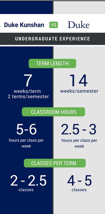 这项培训十分重要,因为昆山杜克大学实行的是非常规的课程时间表。昆山杜克大学以7周为一个小学期,本科生在7周内密集深度学习两门课程,两个小学期(14周)为一个学期;作为对比,杜克大学以14周为一个学期,学生每学期学习4-5门课程。昆山杜克大学每周的上课时间会翻一倍,且大多数课程都不会有超过20名学生。