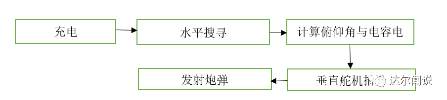 方案一:通过控制电容的充电电压来控制发射距离,假定电容所储存的能量全部传递给了炮弹,由电容的能量计算公式E=1/2*C*U²=1/2*m*v²和距离公式x=V²*sin2θ可得,发射距离x与充电电压U为二次方的的关系,但由于电解电容会有自放电的特性,导致每一次发射时的电压并不完全相同,还会随着电容寿命减少而使误差变大。
