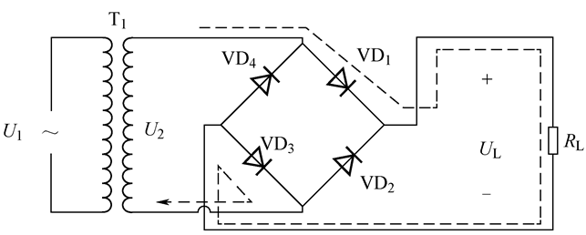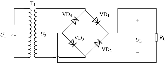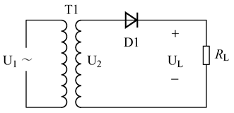 从图1可知,半波整流电路由变压器 、整流二极管D1和负载电阻RL组成。变压器把交流电压降低为所需要的交流电压 ,UL为负载两端电压。半波整流电路的具体整流过程如图2所示。