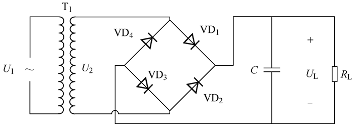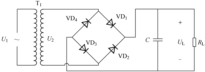 以上讲述的整流电路输出电流均为脉动电流,但在大多数应用中要求整流电路输出为尽可能平滑的直流电,即脉动系数尽可能小。因此通常需要在整流电路之后接一个大容量电容进行滤波,具体电路如图9所示。