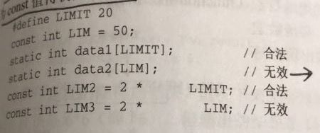 5. 而c++中,static int data1[LIM]是合法的,因为c++将const扩展了。