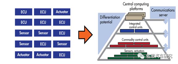 6. 新的E/E构架将基于中央计算机-层-区的概念构建,体现服务导向构架(SOA)的理念。