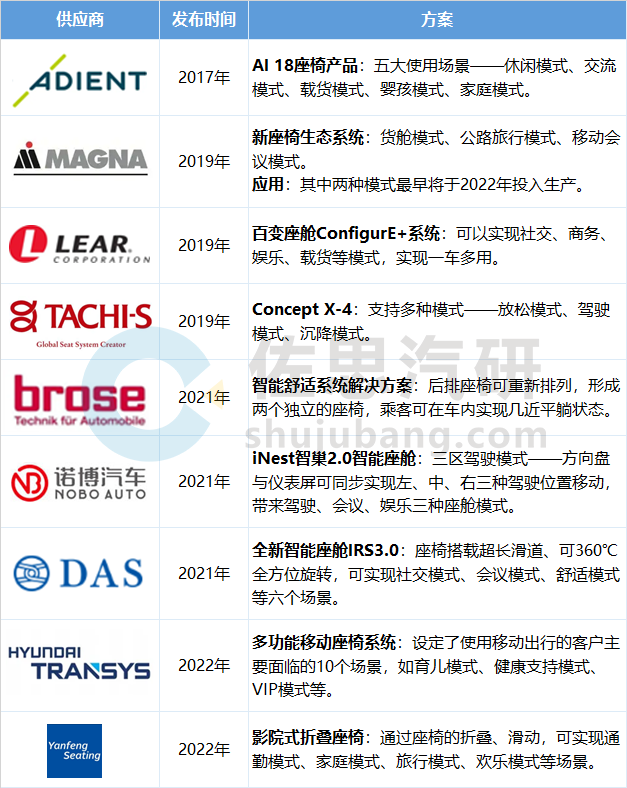 3.4 中国部分自主品牌和造车新势力的座椅配套供应商