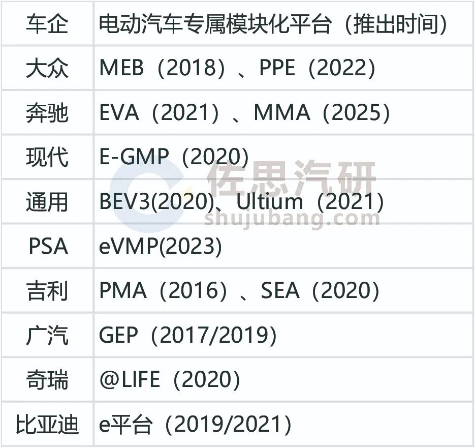 目前,包括大众、宝马、通用已发布了旗下的平台整合计划,未来将着重发展核心平台以取代现有多个平台。