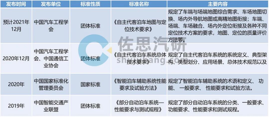 智能泊车相关技术标准