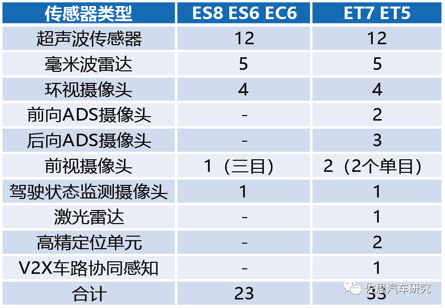 蔚来所有车型自动驾驶硬件配置