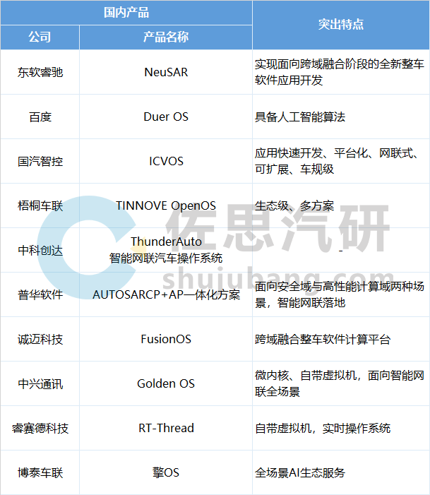 国内广义车载操作系统解决方案主要提供商(排名不分先后)