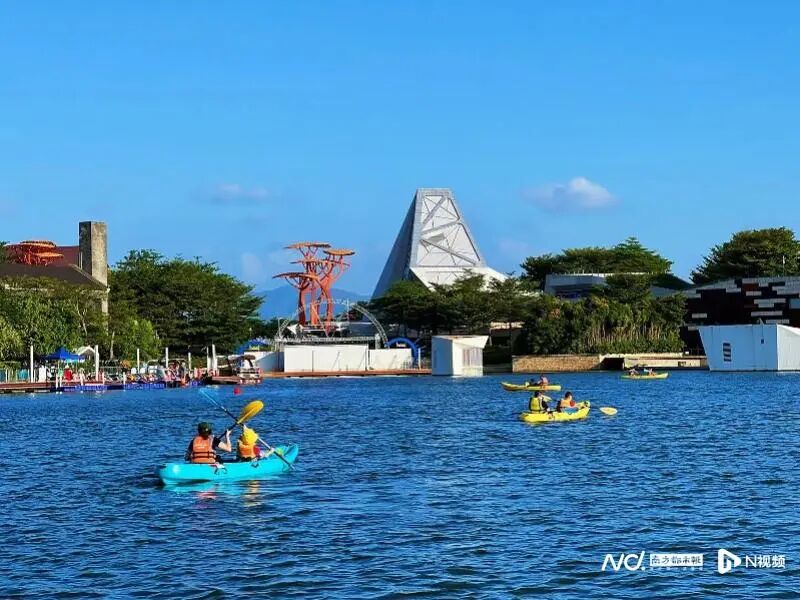 而在欢乐海岸,国庆黄金周开始,亲子家庭也可以选择主题小火车游园。欢乐海岸的曲水湾也开启了游湖划船的运动项目,双人泛舟感受游湖乐趣,也吸引了不少年轻人的打卡。