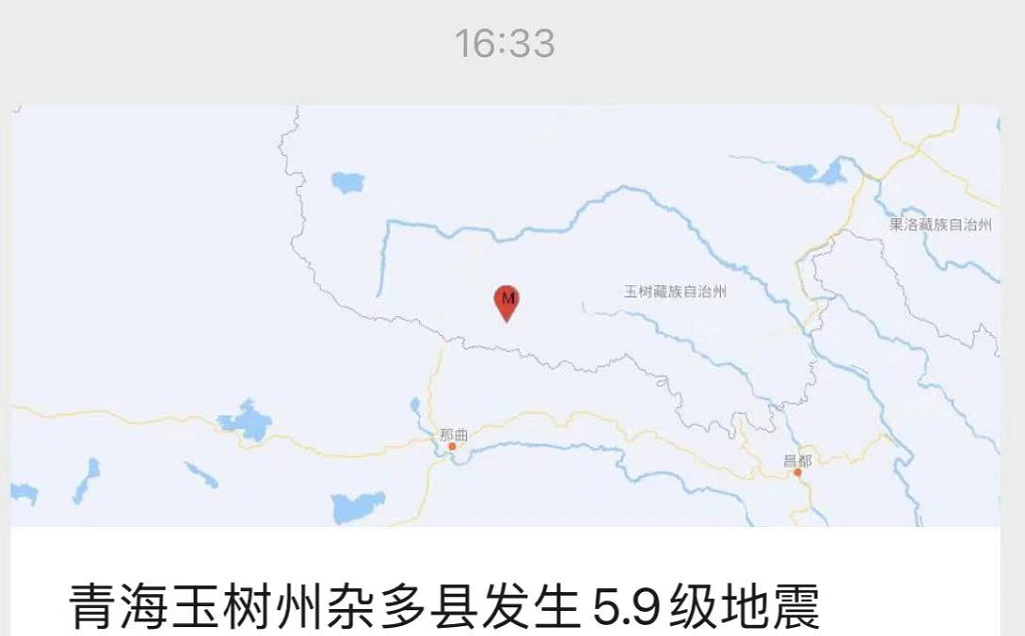 中国地震台网正式测定:08月14日17时16分在青海玉树州杂多县(北纬33.14度,东经92.97度)发生3.7级地震,震源深度9千米。