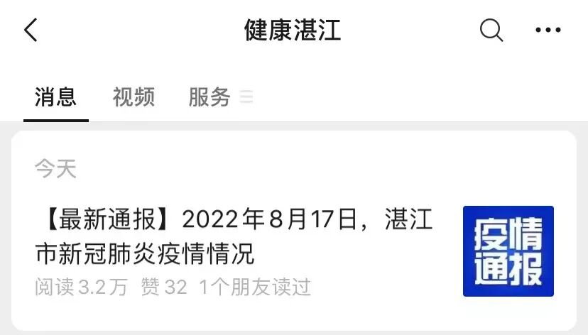 据健康湛江今天(8月18日)通报,2022年8月17日0至24时,湛江市新增3例本土确诊病例,另有3例无症状感染者转为确诊病例,均从关联雷州“0804”疫情的重点人群中检测发现,已全程闭环送至湛江市定点医院隔离治疗。
