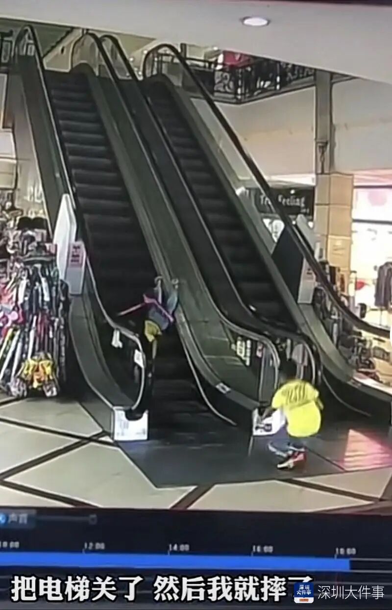 8月17日,网友发帖称其女儿16日在龙岗某商场乘坐扶手电梯时,因某男孩无故按停电梯导致其摔倒受伤。